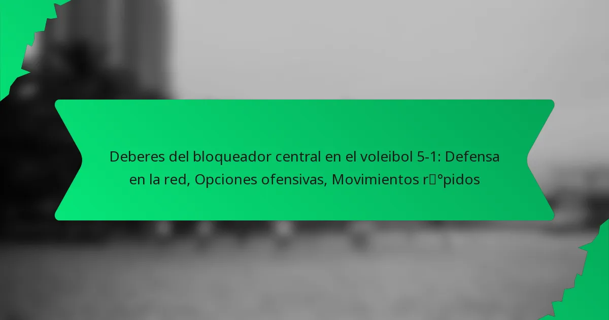 En el voleibol 5-1, el papel del bloqueador central es vital tanto para la defensa como para la ofensiva, enfocándose en la defensa de la red, las oportunidades de anotación y los movimientos rápidos. Al posicionarse de manera efectiva, pueden interceptar los ataques del equipo contrario mientras ejecutan jugadas ofensivas rápidas que mejoran el rendimiento general del equipo. Esta posición exige agilidad, anticipación y coordinación precisa para transitar con éxito entre estrategias defensivas y ofensivas.