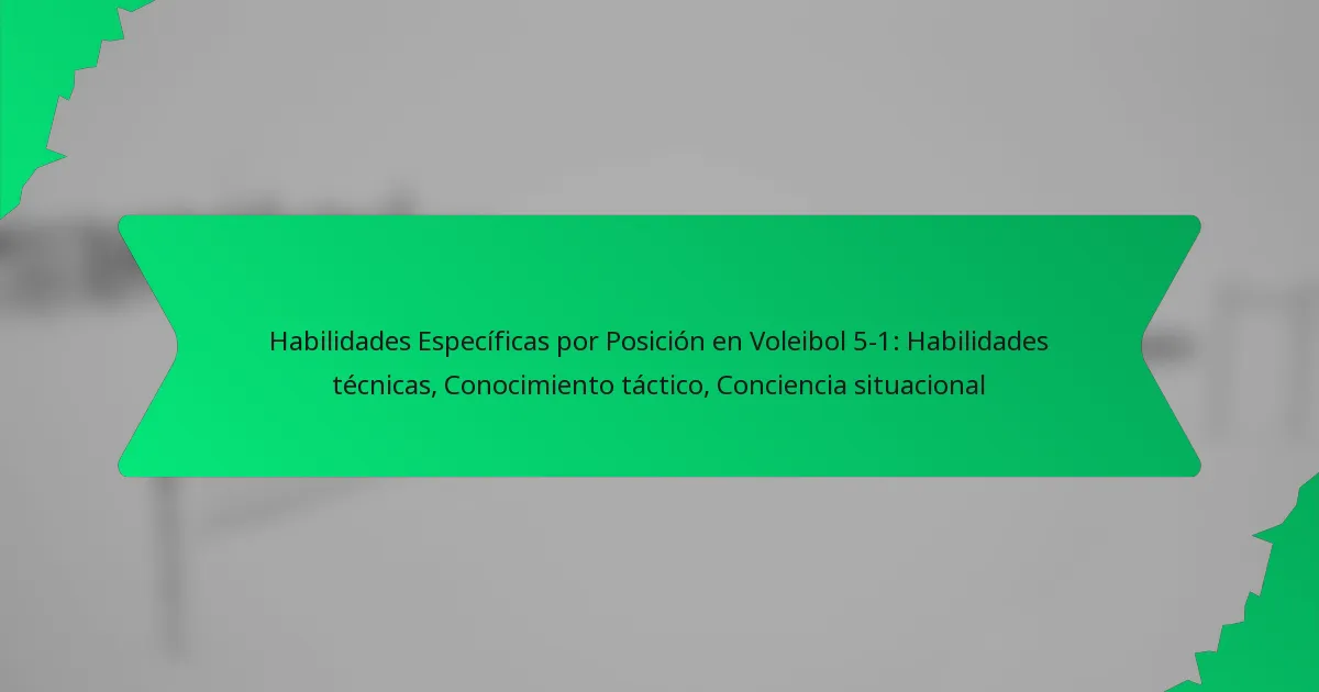 En el voleibol 5-1, cada posición requiere habilidades técnicas específicas que contribuyen al rendimiento general del equipo. Comprender estas habilidades ayuda a los jugadores a sobresalir en sus roles y mejora la dinámica del equipo.