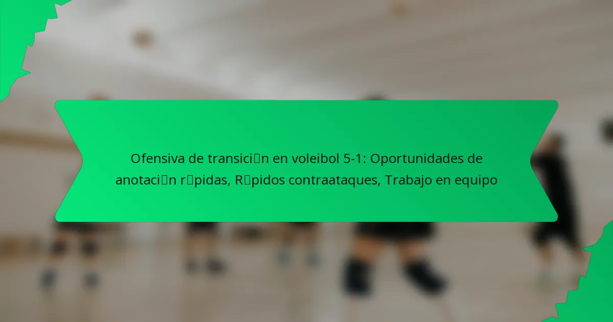La ofensiva de transición en el voleibol 5-1 es una estrategia dinámica que se centra en convertir rápidamente las jugadas defensivas en oportunidades de anotación. Al aprovechar el trabajo en equipo, la comunicación efectiva y el movimiento rápido del balón, los equipos pueden explotar la desorganización del oponente y crear contraataques que lleven a puntos rápidos. Este enfoque enfatiza la importancia de la posición precisa y el tiempo para maximizar el potencial de anotación durante las transiciones.
